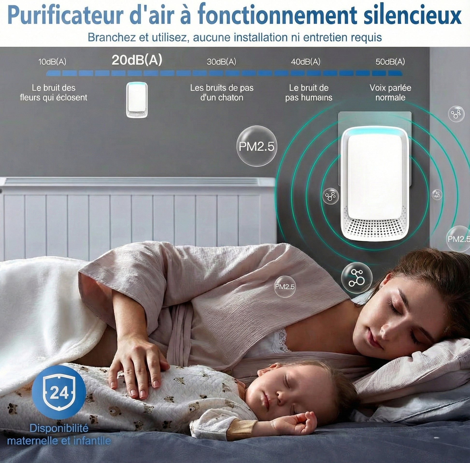 4- Laissez-le branché 24 heures sur 24, 7 jours sur 7 pour une purification continue de l'air.