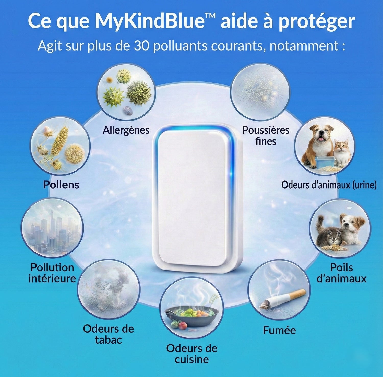 La réponse est OUI. Il ne reste pas inactif, il se met au travail. Alors que les purificateurs standard attendent que la poussière vienne à eux, MyKindBlue passe à l'offensive contre les dangers :